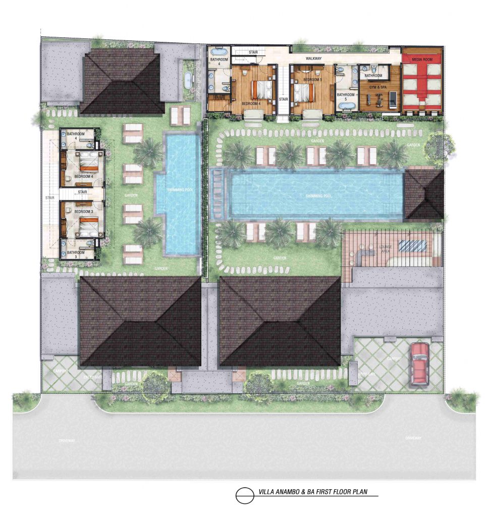 Villa Anam’s 2 master bedrooms are beautifully decked out and overlooking the pool, situated on the ground level. Completed with Ceiling fan and Air conditioned, king sized bed, cabled TV, DVD player, en-suite bathroom with bathtub, rain shower, 2 washbasins, walk-in closets with safe deposit box, facilitated with flat screen TV’s to ensure a total restful holiday.